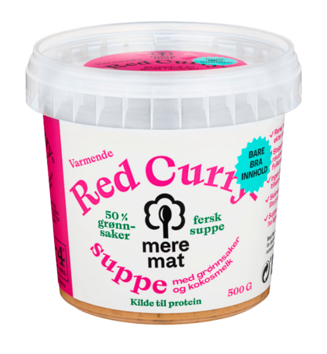 Vann, kokosmelk, sorte bønner (13 %), potet (8 %), røde linser (8 %), spinat (6 %), bambusskudd (5 %), gulrot (4 %), løk (3 %), rød curry (chili, hvitløk, sitrongress, sjalottløk, salt, galangal, kaffir lime, rekepasta), ingefær (2 %), grønnsaksfond (vann, grønnsaker (løk, gulrot, purre, selleri, fennikel), timian, løpstikke, sort pepper, laurbærblad, salt, grønnsakspulver, eddik, persilleekstrakt), rapsolje, hvitløk (1 %), fiskesaus.